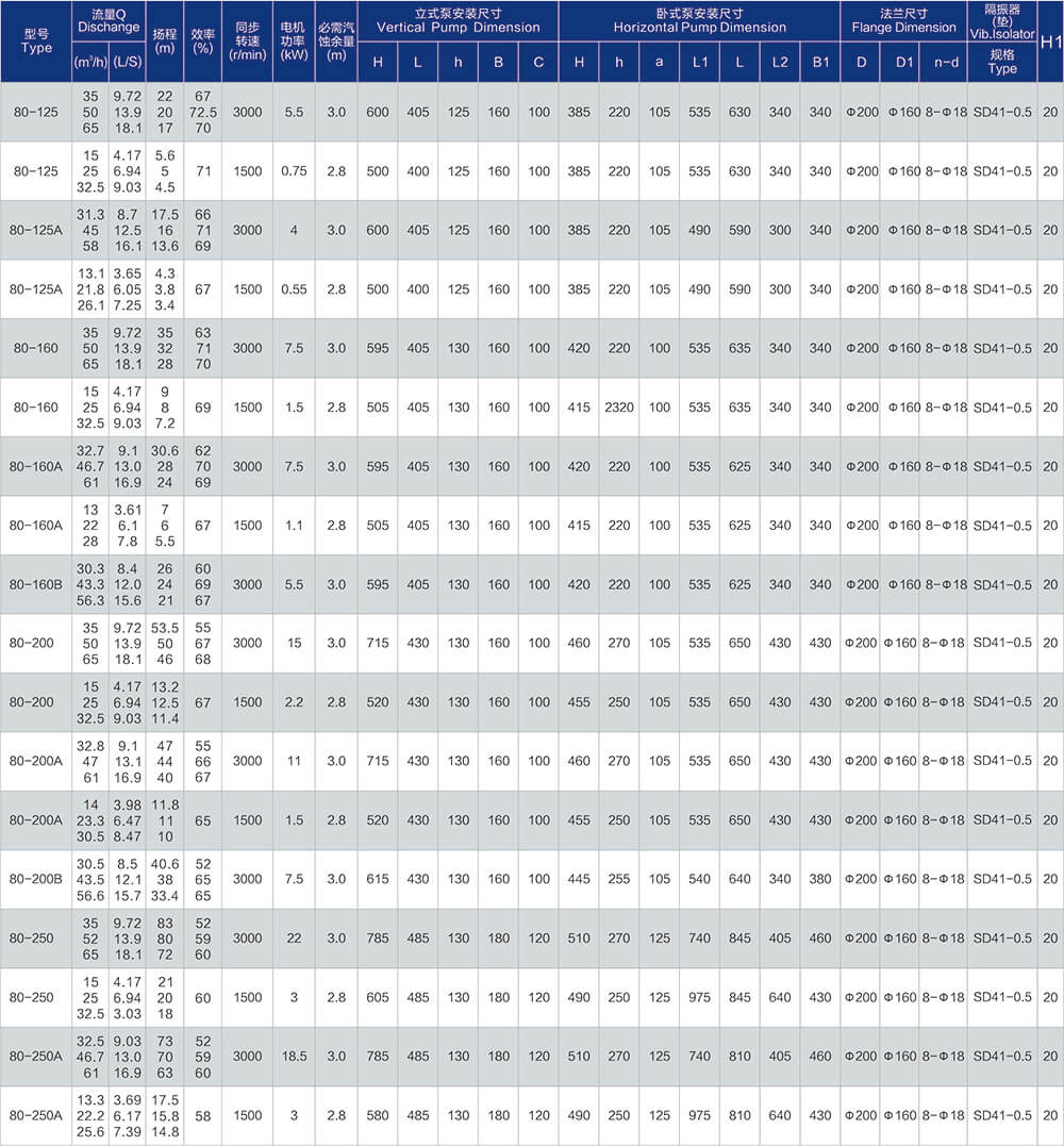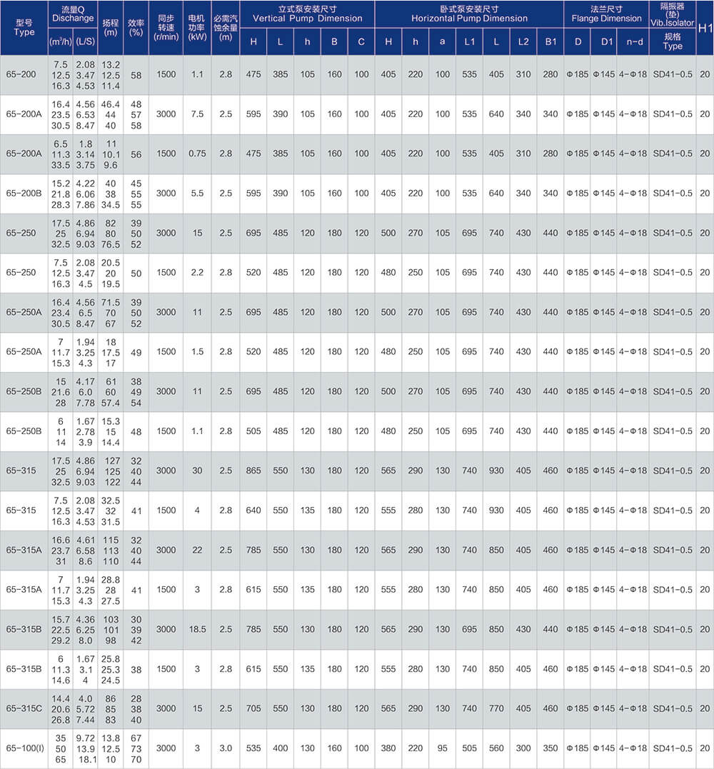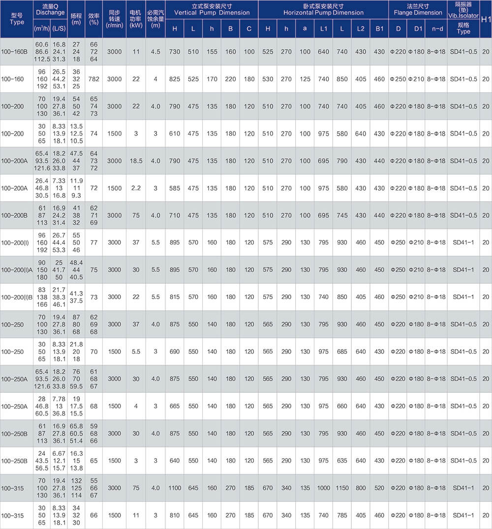 1、泵系统最高压力为1.6MPa.即泵吸入口压力+泵扬程≤1.6MPa。(订货时请注明系统工作压力、泵系统工作压力大于1.6MPa时,应在订货时另行提出。以便在制造时泵的过流部分和联接部分采用铸铁材料。)