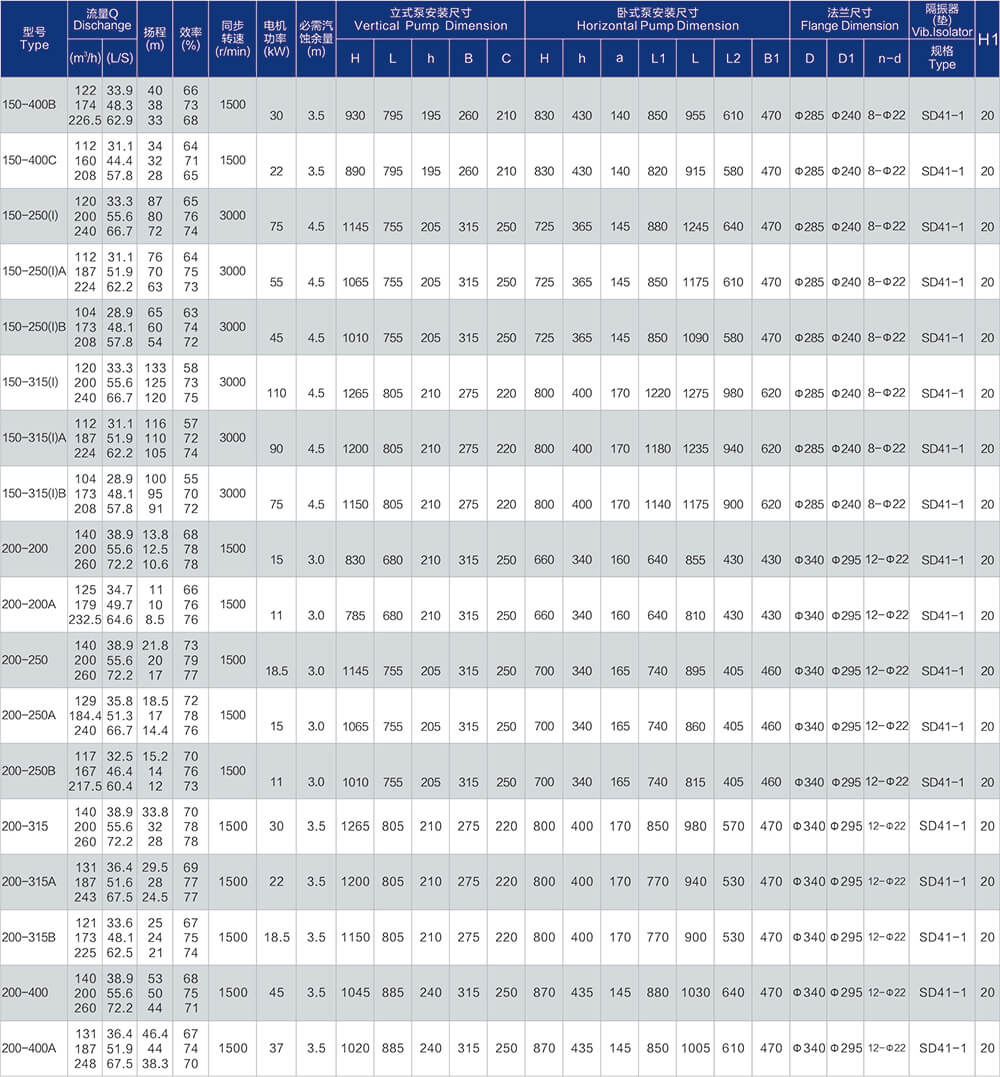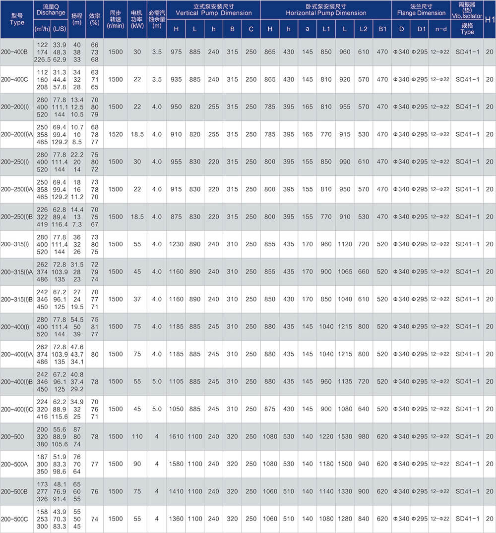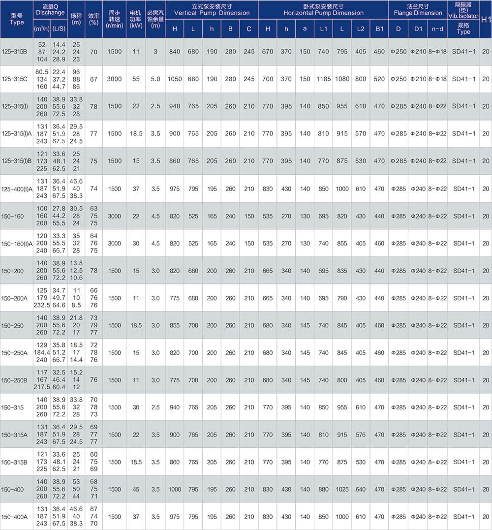 1、泵系统最高压力为1.6MPa.即泵吸入口压力+泵扬程≤1.6MPa。(订货时请注明系统工作压力、泵系统工作压力大于1.6MPa时,应在订货时另行提出。以便在制造时泵的过流部分和联接部分采用铸铁材料。)